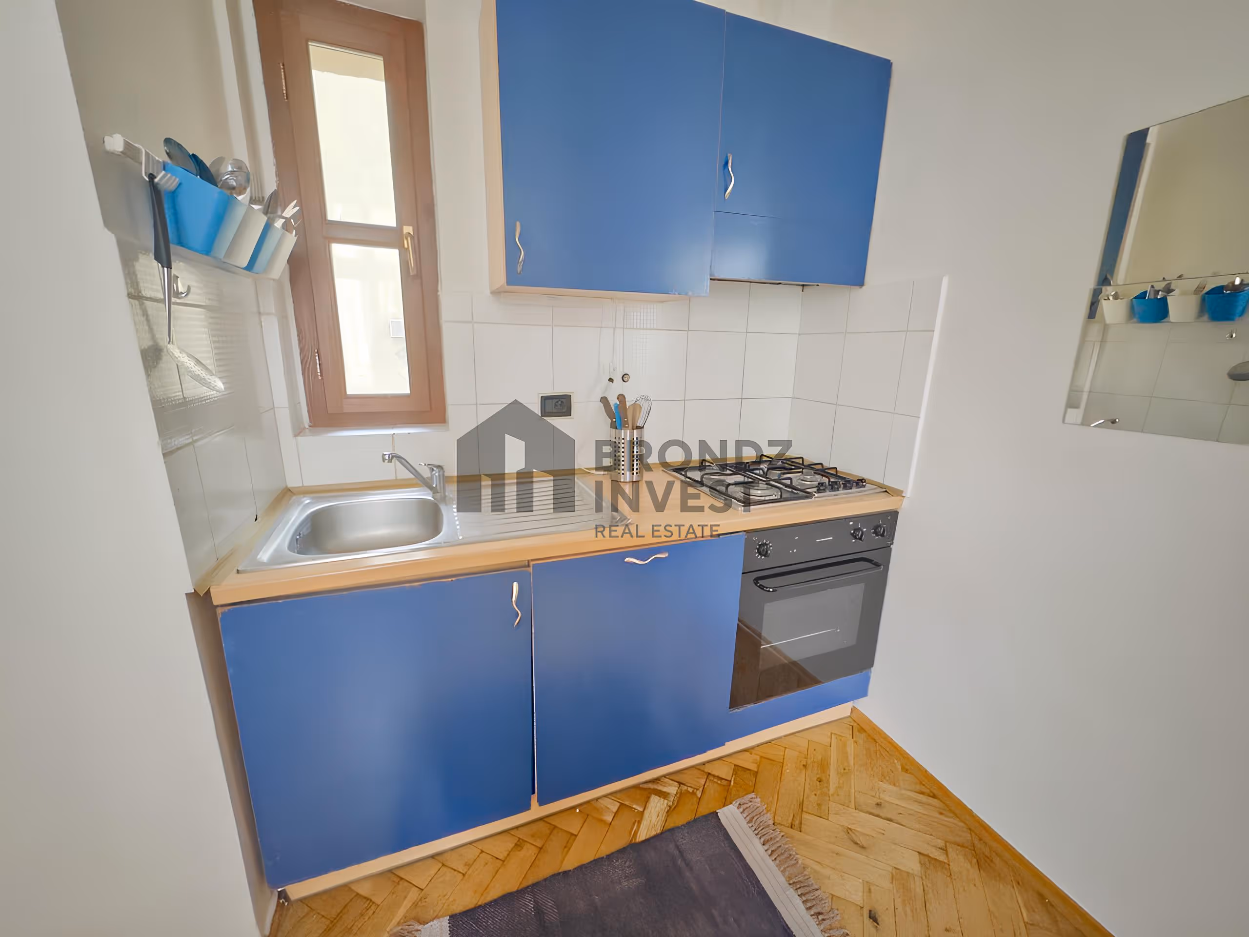 Квартира состоит из гостиной с кухней, спальни, ванной комнаты с ванной и туалета.