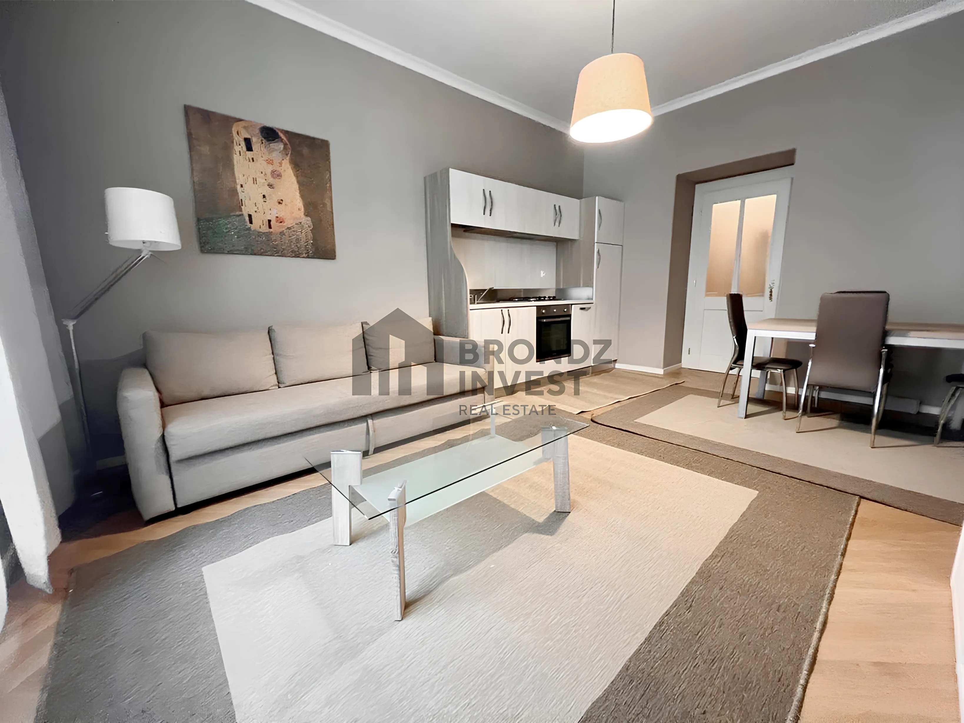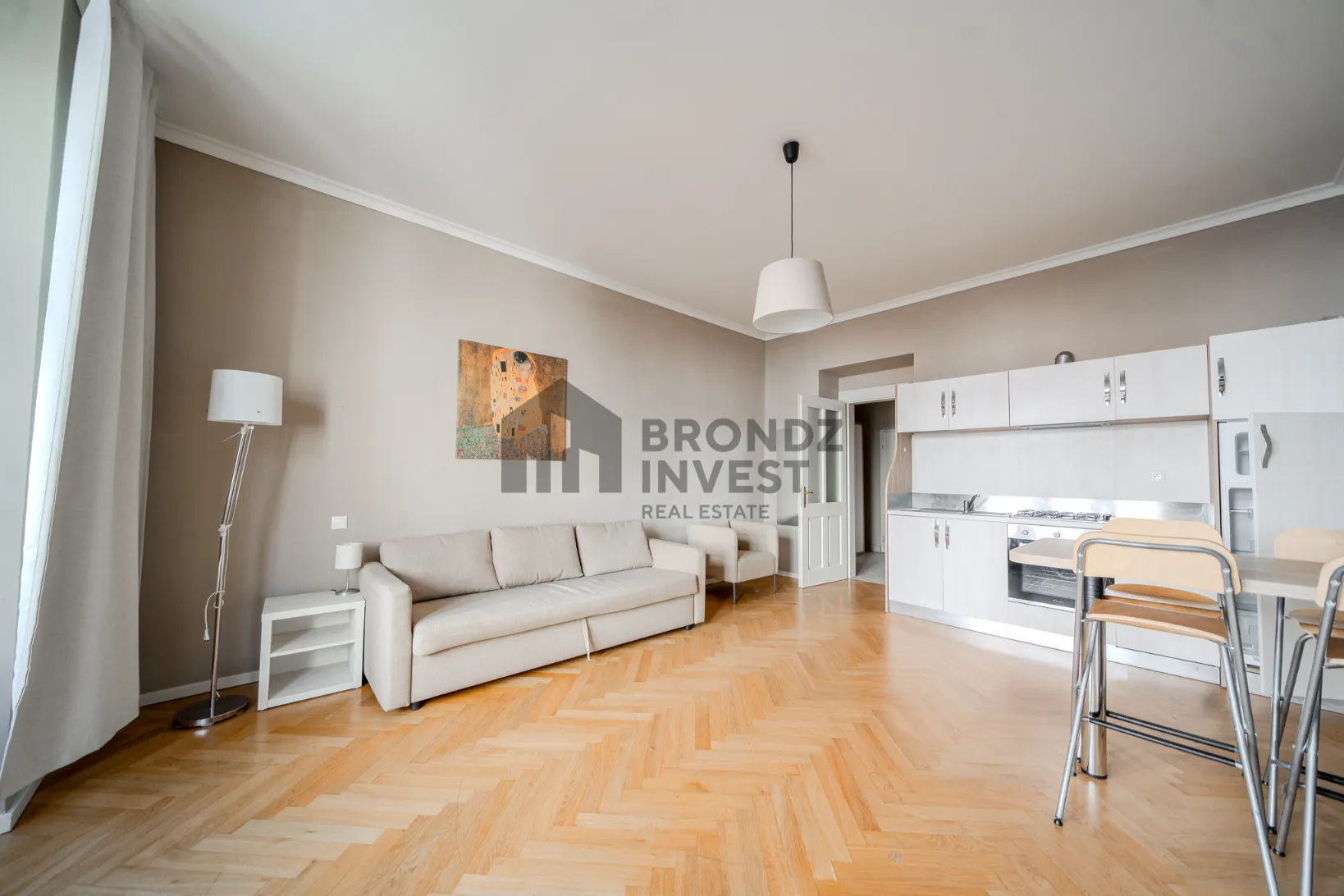 Квартира расположена на 4 этаже и состоит из отдельной спальни, гостиной с кухней, ванной комнаты с ванной, туалета, и балкона.